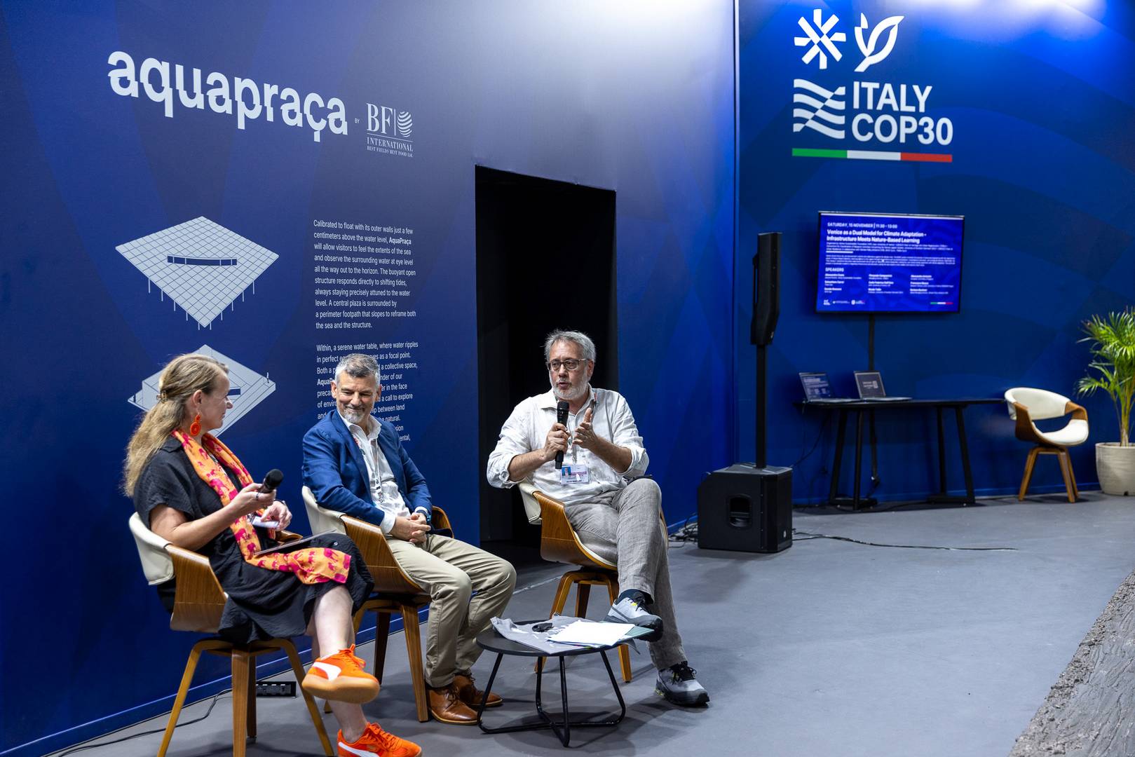 A floating plaza designed by CRA - Carlo Ratti Associati and Höweler + Yoon, the Italian Pavilion at COP30, ‘AquaPraça’ combines design, innovation and a global coalition towards sustainable climate adaptation. AquaPraça was made possible through a unique partnership with the Ministry of Foreign Affairs and International Cooperation, the Ministry of the Environment and Energy Security and the COP30 Presidency, in collaboration with the Italian Agency for Development Cooperation, CIHEAM Bari and the World Bank Group's Connect4Climate programme, and with the support of BF International - a company of the BF S.p.A. Group (as AquaPraça's Naming Partner for COP30), Bloomberg Philanthropies, ENEL and Italy's national state-owned railway holding company, Ferrovie dello Stato Italiane.